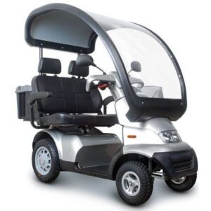 De E4 is een zeer luxe 2-persoons vervoershulpmiddel waarvoor je geen kenteken of rijbewijs nodig hebt. Dit voertuig heeft een topsnelheid van 25 km/u en een max. bereik van 90 km (met lithium accu). Met zijn aantrekkelijke prijs, uniek design en vele features laat hij de Canta en soortgelijken ver achter zich.